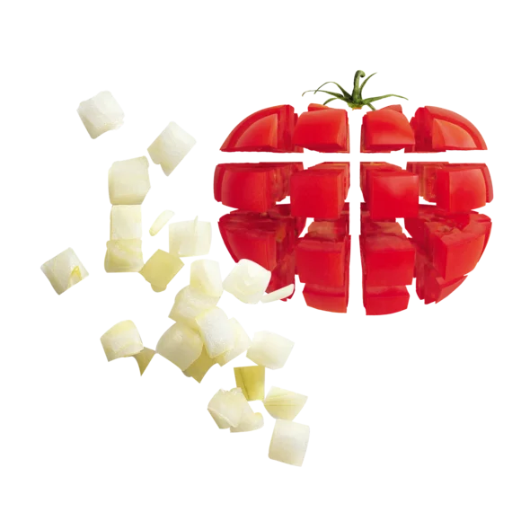 • Zaman tasarrufu sağlar ve verimliliği arttırır. 25 kg sebzeyi sadece 4 dakikada küp şeklinde doğrayın.